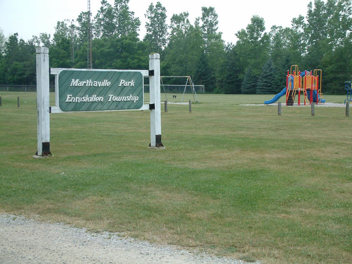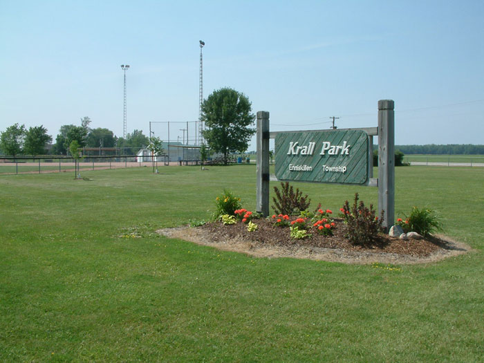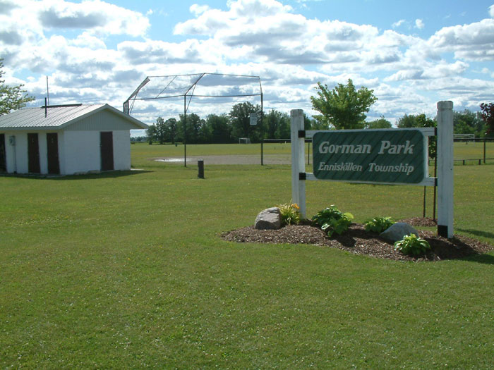 Enniskillen has three recreational parks, each with a baseball diamond,  picnic pavilion and public washrooms.   Playground equipment are available at each of the parks. The Township purchased the land for the 6th Line ball park now known as Krall Park in 1953. Gorman Park was purchased in 1983 and Marthaville Park in 1988, which officially opened in 1991. Since 1958, the Enniskillen Parks & Recreation Committee has organized an active minor fastball program for the area young people. A number of Enniskillen teams have achieved distinction in the Ontario Rural Softball Association competitions. In recent years, the Committee has held the annual Canada Day Chicken Barbeque event.
